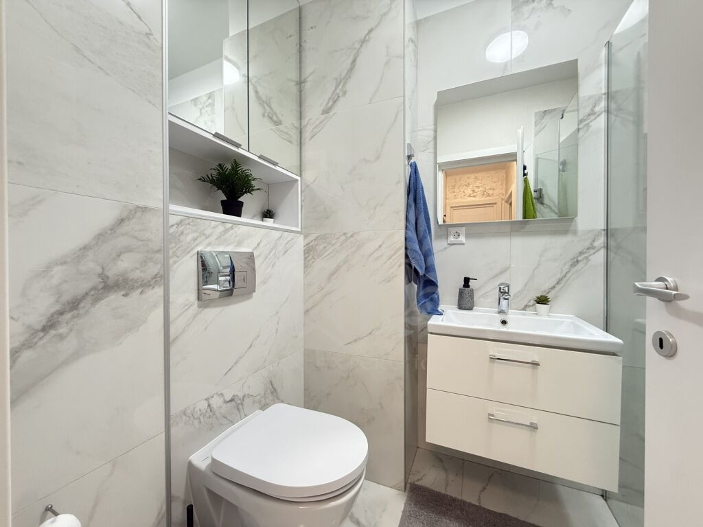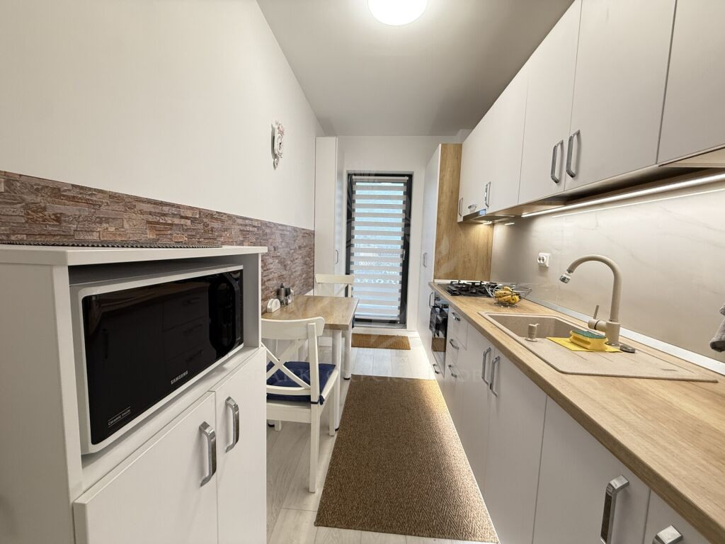 Apartament 3 camere | Bloc nou 2022 | 69 mp utili + balcon 5mp | Parcare inclusă | Cartier Rezidențial Vest – VAMT Agenția noastră vă propune spre vânzare un apartament modern cu 3 camere, situat într-un ansamblu rezidențial nou construit în anul 2022, în Cartierul Rezidențial Vest – VAMT. Apartamentul este amplasat la etajul 6 din 8 al unui imobil modern și are o suprafață utilă de 69 mp, la care se adaugă balconul, rezultând o suprafață construită de aproximativ 75 mp. Compartimentarea este decomandată și bine optimizată, oferind confort și funcționalitate. Compartimentare: • living generos • bucătărie închisă • 2 dormitoare • 2 băi (una cu cadă, una cu duș) • balcon Locuința este dotată cu: • centrală termică proprie Buderus • încălzire în pardoseală • aer condiționat 12000 BTU • finisaje moderne Apartamentul se vinde semimobilat și semiutilat, fiind pregătit pentru mutare imediată. În preț este inclus un loc de parcare suprateran. Ansamblul rezidențial oferă: • acces securizat cu barieră • monitorizare video • curte interioară • loc de joacă pentru copii • spații verzi • spații comerciale în proximitate Imobilul este încadrat în clasa energetică A, fiind considerat o locuință eficientă energetic (Eco). Preț: 147.500 € ușor negociabil. Pentru mai multe informații sau programarea unei vizionări, vă rugăm să ne contactați.