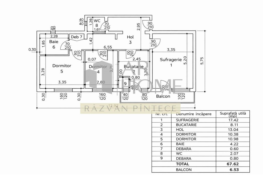 Vanzare apartament 3 camere, confort 1A, decomandat, zona Republicii Mega Image, Ploiesti. Apartamentul are vedere pe spate si este situat la etajul 3 al unui imobil cu strucutura S P 10E, construit in anul 1980 pe cadre de beton armat, anvelopat in intregime pe exterior. Suprafata utila este de 67,62 mp balcon 6,53 mp. Este compartimentat conform planului atasat. Ca si imbunatatiri, dispune de urmatoarele: separatie de gaze cu 2 focuri, usa intrare metalica, tamplarie PVC cu geam termopan. Se vinde la pretul de 89000 EURO. Toate documentele sunt disponibile.
