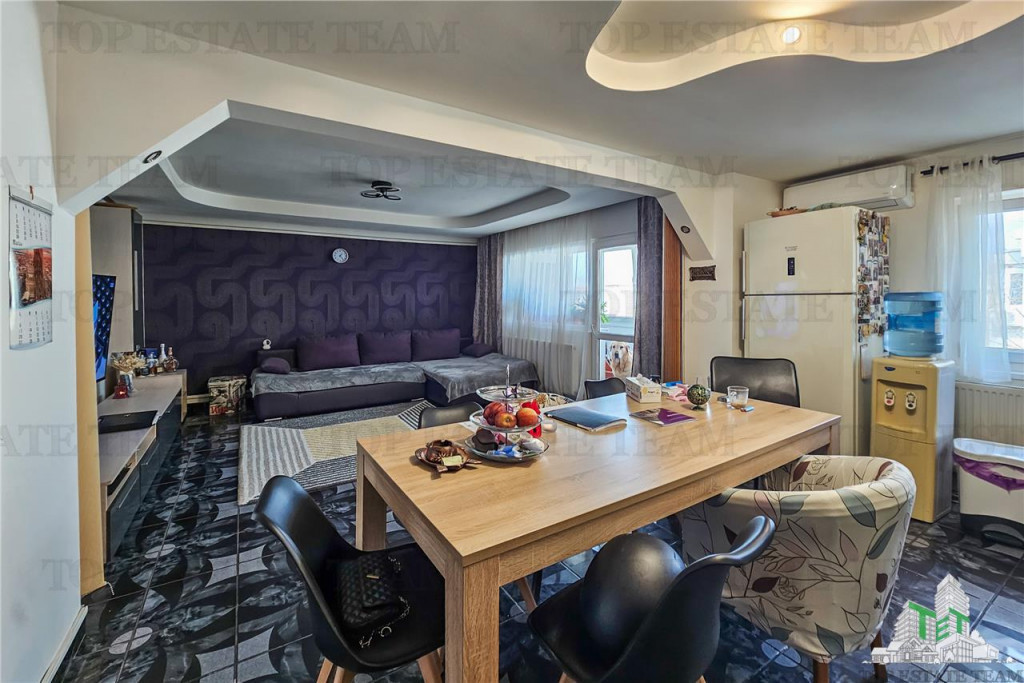 Va prezentam un apartament de 3 camere, intr-un imobil finalizat in anul 1985, pozitionat la etajul 4 din 4. Cu o suprafata totala de 79,54 mp, dedicat pentru cei care cauta un raport corect intre pret si suprafata. Compartimentare: Living bucatarie open space: 35,16 mp Dormitor 1: 13,77 mp Dormitor 2: 11,60 mp Baie: 4,03 mp WC serviciu: 2,51 mp Hol: 4,90 mp Balcon 1: 3,70 mp Balcon 2: 3,85 mp Imbunatatiri si dotari: Apartamentul se vinde partial mobilat si utilat, fiind pregatit pentru mutare imediata. - Instalatia sanitara reconditionata - Instalatia electrica reconditionata - Aer conditionat in fiecare camera ndash; confort in orice sezon - Boiler instalat ndash; solutie practica pentru perioadele fara apa calda Datorita vederii mixte, apartamentul beneficiaza de lumina naturala pe tot parcursul zilei, creand un ambient placut si aerisit. Localizare excelenta: La doar 5 minute de parc La 4 minute de mijloacele de transport in comun La 5 minute cu masina de Piata Delfinului Acces rapid catre centre comerciale, piata si magazine Va asteptam la vizionare!