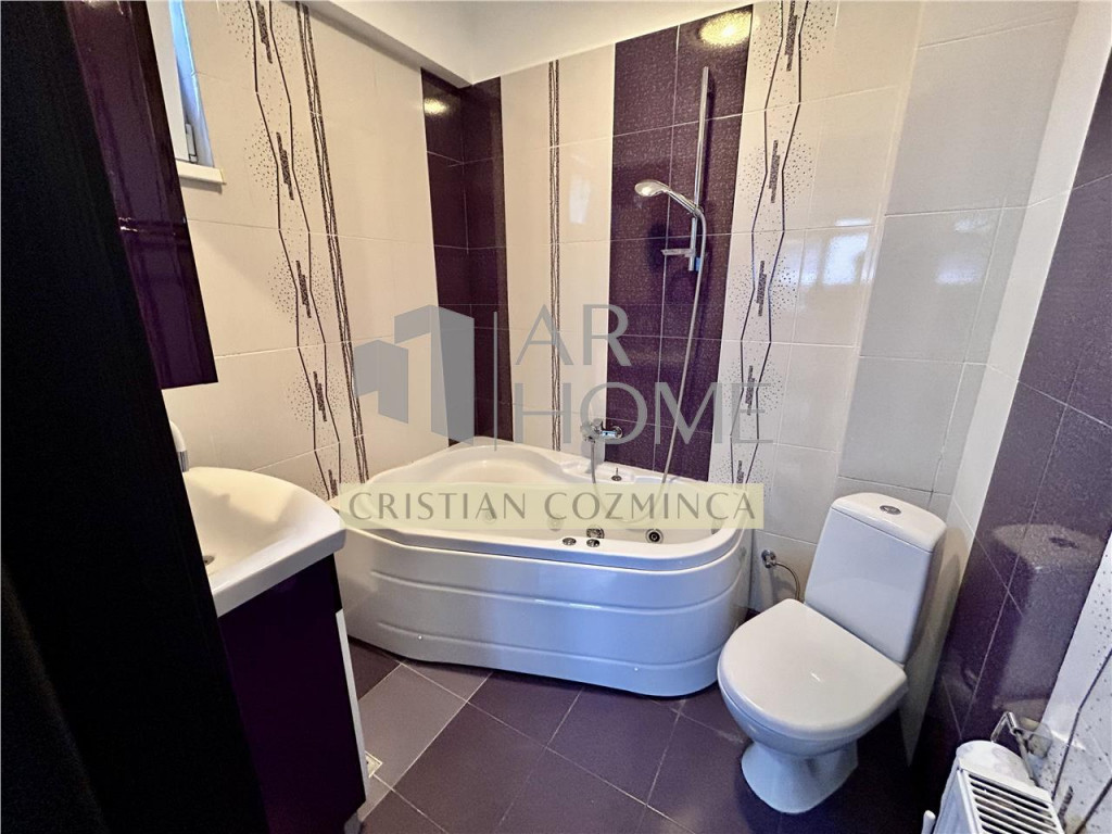 Inchiriere apartament 3 camere, modern, 2 bai, Zona Vest, Ploiesti Apartamentul este situat la etajul 1 al unui imobil modern, construit in 2014, cu regim de inaltime P 6. Cladirea este realizata pe cadre de beton, izolata termic si prevazuta cu interfon. Proprietatea beneficiaza de o suprafata generoasa de 102 mp, compartimentata eficient pentru confortul unei familii sau al unui cuplu care isi doreste spatiu. Compartimentare: living, 2 dormitoare, bucatarie separata, 2 bai. Apartamentul dispune de finisaje moderne si este complet echipat pentru locuire imediata. Finisaje si dotari: centrala termica moderna; aer conditionat; tamplarie PVC, usa metalica; parchet, gresie, faianta, vopsea lavabila; televizor, combina frigorifica, plita cuptor electric; masina de spalat. Facilitati suplimentare: doua locuri de parcare in subteran; boxa de depozitare inclusa in pret. Localizare: Pozitionat excelent, aproape de Gara de Vest, statiile pentru autobuzul 2, magazine si alte puncte de interes. Zona linistita, sigura si foarte practica pentru orice activitate zilnica. Se inchiriaza conform fotografiilor, la pretul de 580 euro/luna, plus garantie.