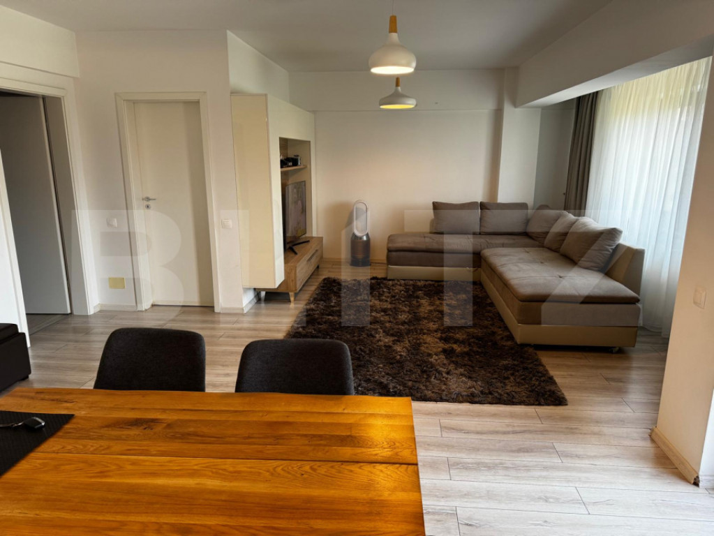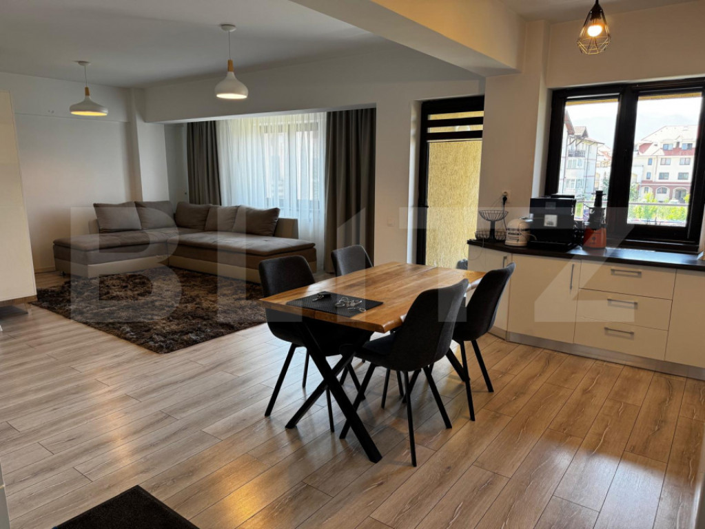 BLITZ IMOBILIARE va propune spre vanzare o locuinta exceptionala, edificata in 2023, in arealul Tractoru Brasov-zona de vile - pozitionata excelent la etaj intermediar al unei vile cu un view deosebit, liniste si aer curat. Apartamentul de 3 camere are o suprafata utila de 77 mp, plus un balcon de 6 mp, orientat spre sud si este alcatuit din: 2 dormitoare, un living deschis cu o bucataria, extrem de generoasa si dotata complet cu electrocasnice noi, 2 bai, un hol si un dresing. Tot mobilierul este cumparat anul trecut, mare parte de la Mobexpert. Este inclus in pret un loc de parcare in incinta complexului, dotat cu bariera si acces cu telecomanda. Pretabil pt investitie, proprietarul este dispus sa achite chirie 700 euro lunar cf contract de inchiriere pentru cel putin inca 18 luni, dupa vanzare. Pentru mai multe detalii sau pentru a stabili o vizionare va rog sa ma contactati! Cod ofertă / ID BLITZ: P151820 Id intern: P151820