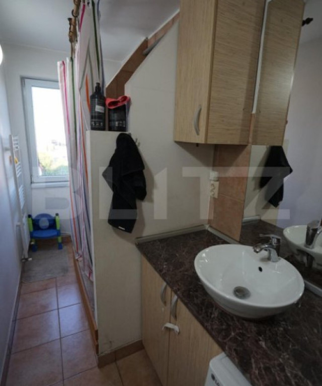 Blitz va propune un apartament deosebit, situat în Baciu – zona Petrom, ideal pentru cei care își doresc un cămin cald, bine compartimentat cu balcon si parcare subterana. ???? Suprafață utilă: 56.41 mp ???? Balcon: 6.37 mp – cu view spre Cluj și natură ???? Loc de parcare subteran inclus Compartimentare inteligentă: • 2 dormitoare (unul generos și unul mai cochet) • Living open-space cu bucătărie • Baie • Balcon cu priveliște aerisită, perfect pentru relaxare Dotări & finisaje: ✓ Se vinde complet mobilat și utilat ✓ Stil rustic, cu mobilier din lemn masiv și elemente din piatră naturală ✓ Electrocasnice incluse: • Mașină de spălat haine • Mașină de spălat vase • Plită, hotă, cuptor, cuptor cu microunde • Frigider • 2 televizoare: Sony și Samsung • Aer conditionat Avantaje: • Apartament luminos, cu orientare sud-vestica • Ideal pentru locuit sau investiție • Priveliște deosebită din balcon • Loc de parcare subteran – inclus în preț ???? Pentru mai multe detalii sau pentru a programa o vizionare, nu ezitați sa ne contactați! Cod ofertă / ID BLITZ: P144556 Id intern: P144556