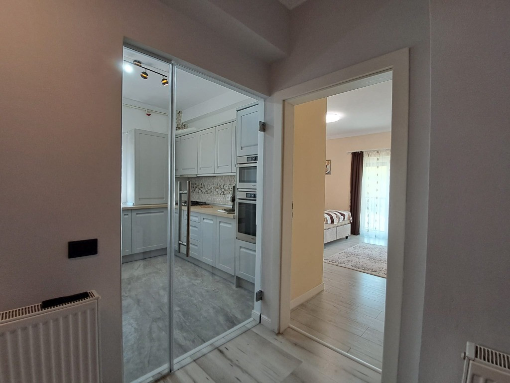 Apartament situat in bloc constructie noua etaj 1 din 2 Apahida semicentral. Suprafata utila 57mp+ balcon 4 mp, compus din: zona de living, bucataria separata cu usa din sticla, 2 dormitoare, baie cu geam si un balcon. Etaj 1 din 2; loc de parcare exterior in fata blocului; Aer conditionat, expozitiune sud-vest, centrala termica proprie si calorifere, finisaje moderne in camere si elemente de piatra decorativa in zona de living, mobilier pe comanda in bucatarie, electrocasnice incorporabile: cuptor electric, plita, cuptor cu microunde, hota, centrala termica incorporata in mobilier, frigider side-by-side, aer conditionat. Pret de vanzare 110.000 euro. Se vinde prin agentie comision 2%.