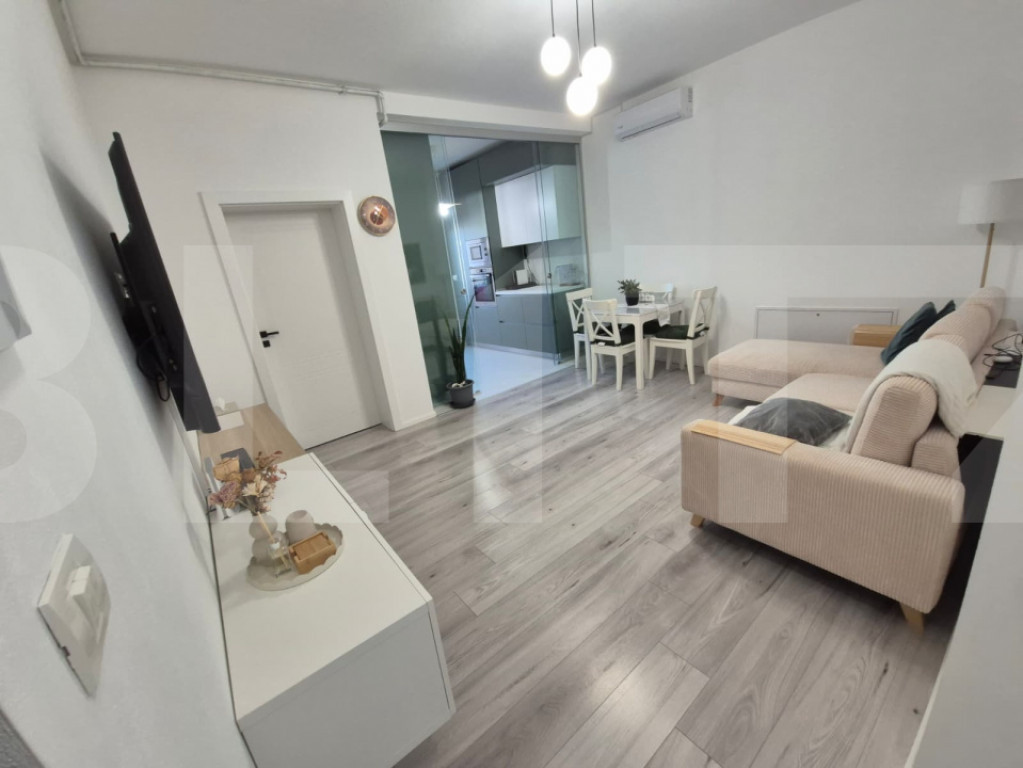 Blitz Imobiliare vă propune spre vânzare un apartament modern cu 3 camere, complet mobilat și utilat, situat în Moșnița Nouă – Cartier Europa, într-o zonă liniștită, ferită de trafic intens. Proprietatea se află la etajul 1 într-un imobil tip vilă cu doar 4 apartamente, construcție 2025, având clasa energetică A, ideal pentru cei care își doresc confort, eficiență energetică și intimitate. Suprafață. Suprafață utilă: 59,2 mp; Balcon: 4 mp; Spațiu de depozitare la mansardă: aproximativ 20 mp – ideal pentru amenajarea unui birou sau spațiu suplimentar de locuit. Compartimentare: Living luminos; Bucătărie open-space, separată de living prin perete și ușă din sticlă; 2 dormitoare; Baie; Balcon cu acces din două camere; Dotări și finisaje: Centrală proprie pe gaz + termostat smart; Încălzire în pardoseală; Aer condiționat; Geamuri tripan, tâmplărie PVC; Uși Porta Doors; Apartament foarte bine iluminat natural; Electrocasnice incluse; Frigider încorporat; Plită cu inducție; Cuptor electric; Cuptor cu microunde; Mașină de spălat vase; Mașină de spălat rufe cu uscător; Alte avantaje: Loc de parcare inclus; Curte interioară; Apartament bine poziționat, cu umbră pe timpul zilei, oferind confort termic ridicat; Acces din două străzi, incluse în proiectul de asfaltare pentru 2026; Utilități: Curent; Gaz; Apă de la rețea; Canalizare; Facilități în apropiere: Lidl, Penny, farmacie, StayFit – aproximativ 1 km; Acces rapid către strada principală și centură; În vecinătate: creșă privată și easybox. Se acceptă credit bancar. Pentru mai multe detalii sau pentru programarea unei vizionări, vă stăm cu drag la dispoziție. Blitz Imobiliare – partenerul dumneavoastră în găsirea locuinței ideale. Cod ofertă / ID BLITZ: P166566 Id intern: P166566