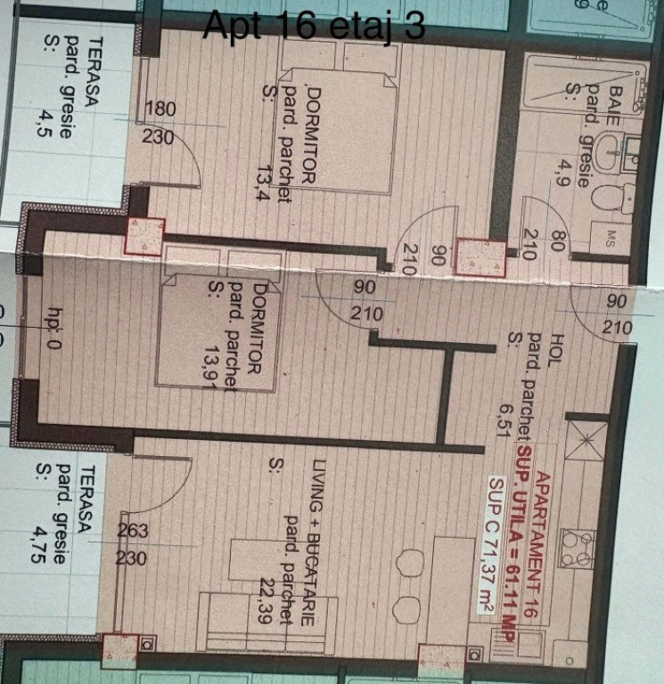 Suprafață utilă: 61 mp + 2 balcoane de 12 mp.