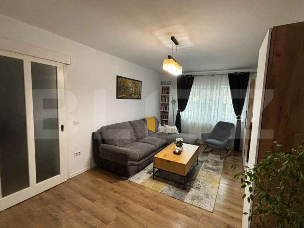 * Design & Atmosferă: Finisaje în stil scandinav (gresie și parchet) care oferă luminozitate, completate de uși din lemn natural.