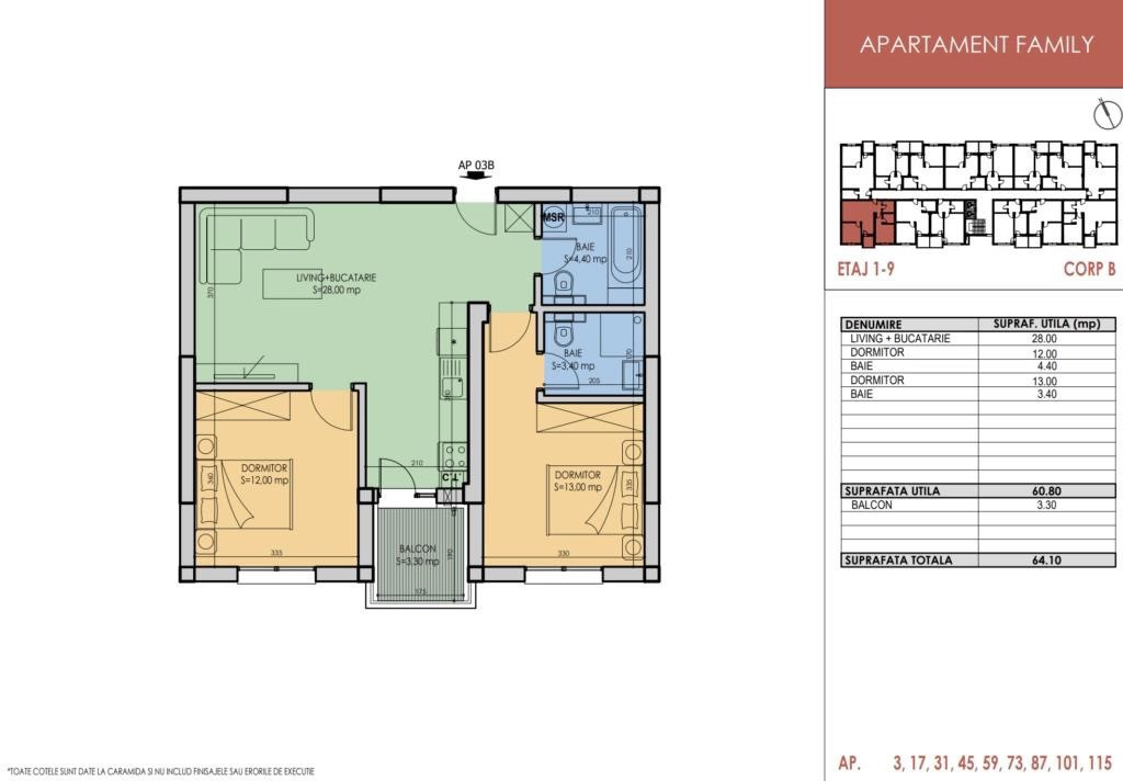 Apartament 3 camere 64.10mp Pasarela Berceni