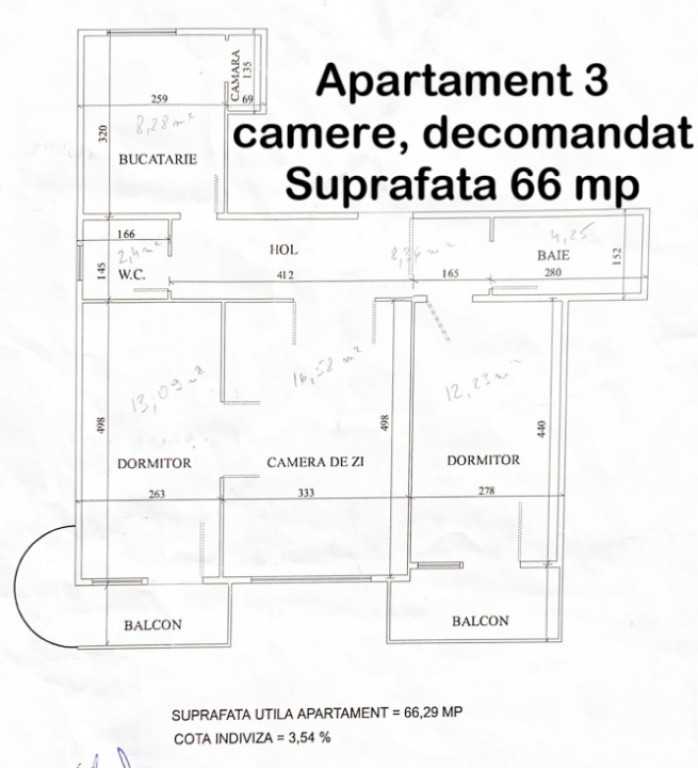 Apartament 3 camere 66 mp decomandat 2 bai mobilat utilat co