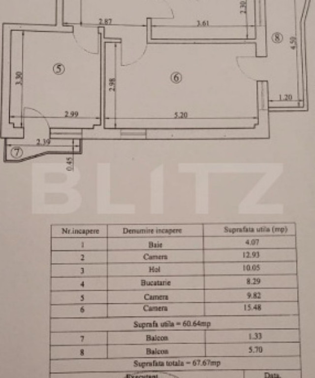 Apartament 3 camere, 67.67 mp, zona Galata