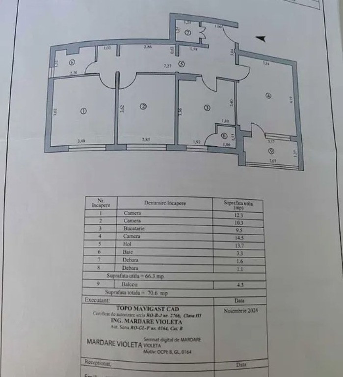 Compartimentare: Living, 2 dormitoare, bucătărie, o baie și un balcon.