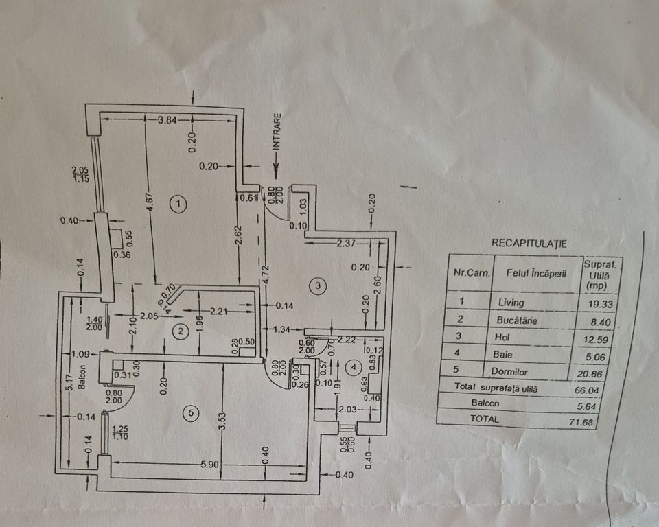 Apartament 3 camere /71.68 mp/Centru / Etaj 2