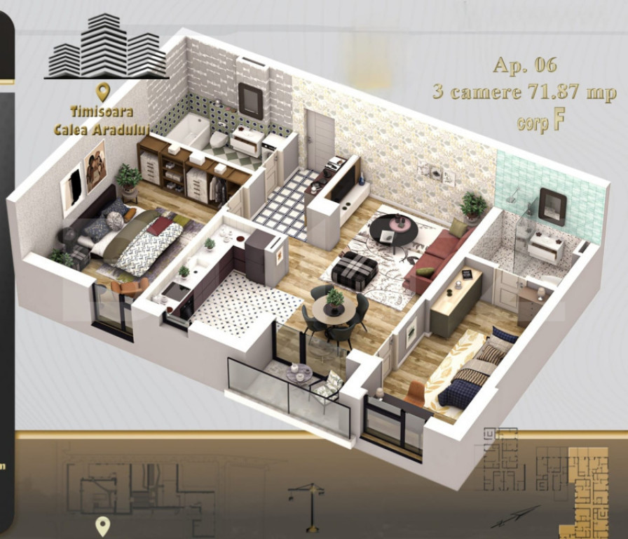 Apartament 3 camere, 71,87 mp utili, decomandat, Calea Aradu