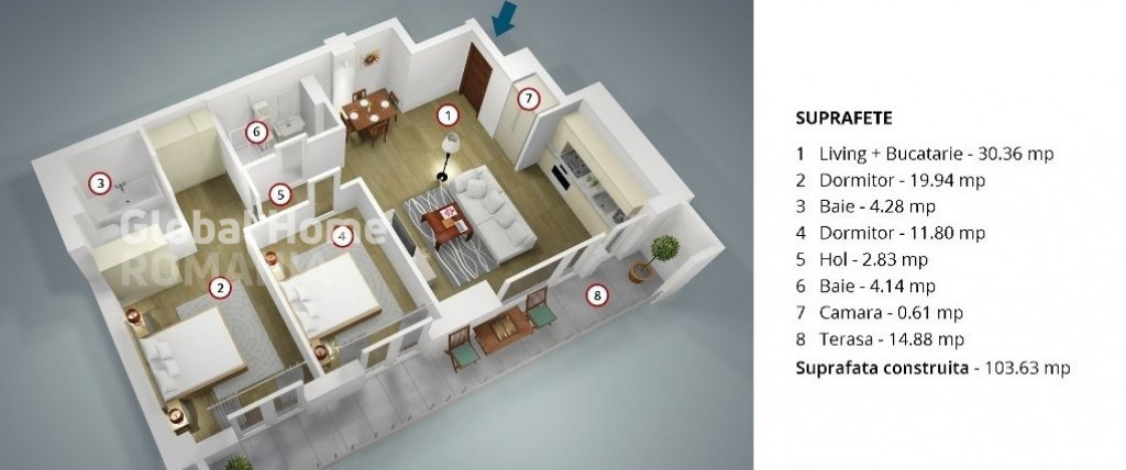 Alexandru Popovici ^ Global Home Romania ^ RealEstate ^ Imobiliare: Apartament 3 camere 73MP | Comision 0 | Mobilat si utilat | Loc de parcare | Apartament de vânzare cu 3 camere, situat la etajul 3 al unui imobil amplasat într-o zonă liniștită din Sectorul 1, în apropiere de zona Băneasa. Locuința are o suprafață utilă de 73 mp și este completată de o terasă generoasă de 15,80 mp. Apartamentul beneficiază de vedere liberă către o zonă frumos amenajată, iar orientarea estică oferă lumină naturală pe tot parcursul dimineții, creând un ambient plăcut și primitor. Compartimentarea este eficientă și cuprinde living spațios cu bucătărie open space, dormitor secundar ce poate fi folosit și ca birou, baie pentru zona de living și pentru dormitorul secundar, dormitor matrimonial cu dressing și baie proprie, precum și o terasă de 15,80 mp care poate fi accesată din fiecare cameră. Locuința se vinde complet mobilată, mobilierul existent fiind de bună calitate și inclus în preț. Locul de parcare se poate achiziționa separat la prețul de 19.000 euro, iar prețul apartamentului este negociabil în cazul achiziționării împreună cu locul de parcare. Apartamentul este situat într-o zonă bine conectată, cu acces rapid către principalele puncte de interes din nordul capitalei. Băneasa Shopping City se află la aproximativ 5 minute cu mașina, iar în apropiere se regăsesc supermarketuri, restaurante și cafenele. Stațiile STB se află la aproximativ 2–4 minute de mers pe jos, cu linii ce oferă legături rapide către zonele centrale și către zona de business Pipera. Accesul către aeroportul Băneasa și către DN1 este rapid, iar stațiile de metrou din zona Pipera sau Aurel Vlaicu pot fi ajunse în aproximativ 10–15 minute cu mașina sau transportul public. Zona este apreciată pentru liniște, spații verzi și accesul rapid către nordul orașului. Pentru vizionare, mă puteți suna la numărul 0736376006.___ Global Home Romania, este o firmă în schimbare de jocuri pe piață imobiliară din România ce se afla intr-o expansiune rapidă. Modelul personalizat avand la baza tehnologia digitala, inteligenta artificala și interacțiune umană alături de colaboratorii firmei, inspiră constant încredere. Având o abordare de marketing profesională și îndrăzneță a ridicat atenția asupra modului în care oamenii se gândesc la imobiliare in Romania. Global Home Romania, companie imobiliara infiintata in 2020 ce continuă să se dezvolte cu succes în domeniu, reușind să atraga constant parteneri și colaboratori de încredere. Cu sediul în București, Global Home Romania, a apărut ca o firmă imobiliară de încredere ce își propune constant să livreze servicii de calitate. Misiunea Global Home Romania în piața imobiliară, este aceea de a stabili un raport solid bazat pe încredere și profesionalism între reprezentantii nostri imobiliari bine informati impreuna cu toti clientii si colaboratorii companiei. Id intern: P17053
