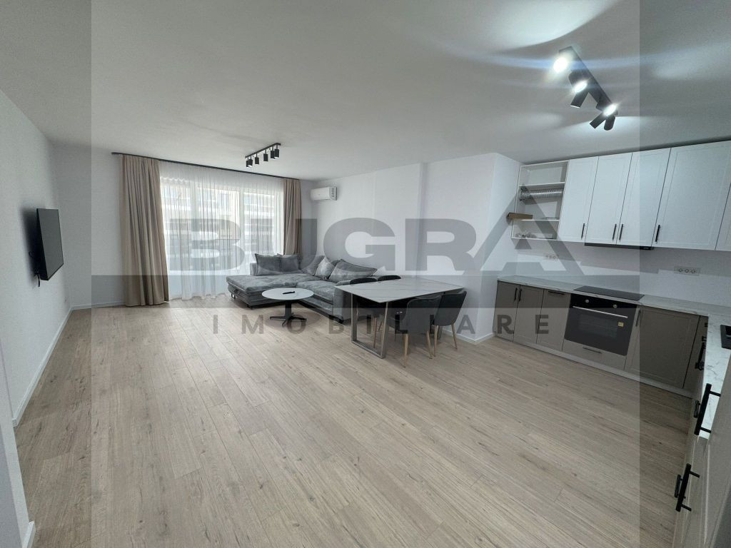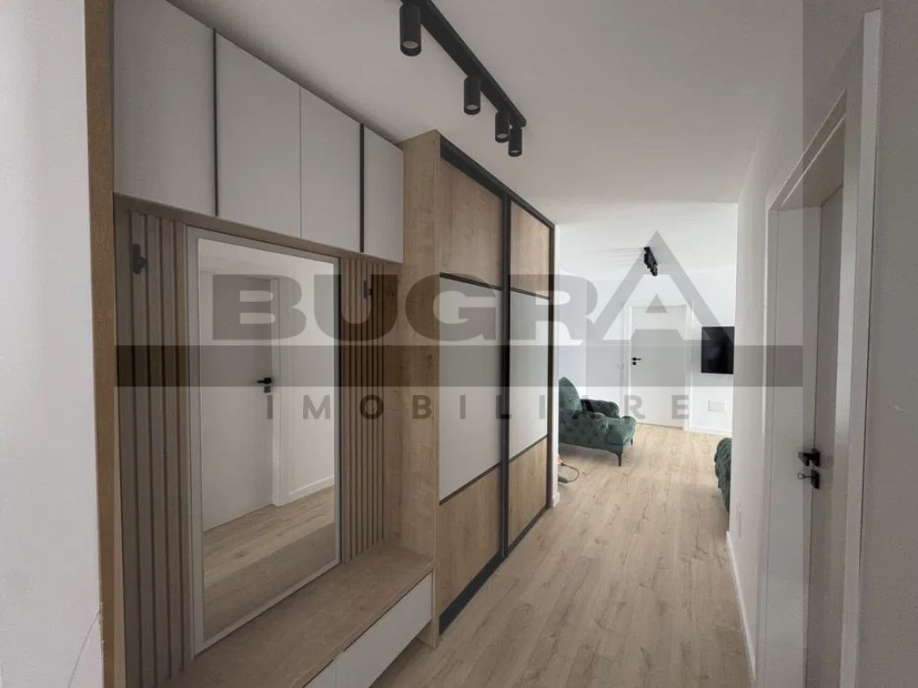 Bugra Imobiliare ofera spre vanzare un apartament cu 3 camere, in cartierul Marasti, complexul Elite Residence. Apartamentul dispune de o suprafata utila de 77 mp, 2 dormitoare, living, bucatarie, 2 bai si 1 terasa de 30 mp. Situat la etajul 3 din 7, intr-un imobil nou, apartamentul se vinde complet mobilat si utilat, totul fiind nou. Acesta dispune de toate electrocasnicele necesare unei familii: aer conditionat, masina de spalat haine si vase. La parterul complexului Elite Residence se afla un magazin Lidl iar Auchan este la 5 minute de mers pe jos. Se poate achizitiona si un loc de parcare subteran contra sumei de 20.000 de euro. Va asteptam cu drag la vizionari!