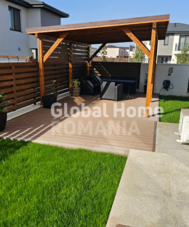 Apartamentul beneficiaza de o gradina superba de 140MP cu sistem automat de irigare si terasa proprie cu foisor din lemn.
