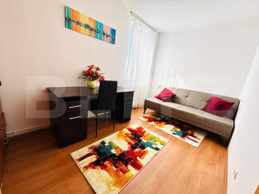 Blitz vă propune spre închiriere un apartament decomandat cu 3 camere, situat la etajul 7 din 10, într-un bloc izolat termin și fonic, cu lift, oferind vedere panoramică asupra orașului. Proprietatea are o suprafață de 85 mp, este luminoasă, cu finisaje moderne și compartimentare practică, ideală pentru confortul unei familii. ✔️ Living spațios cu colțar reglabil cu acționare automată ✔️ Bucătărie generoasă, complet utilată (inclusiv mașină de spălat vase nouă) ✔️ Dormitor matrimonial cu spații de depozitare generoase, TV și iluminat reglabil ✔️ Al doilea dormitor – ideal birou sau cameră copil ✔️ 2 băi (baie principală cu cadă și geam) ✔️ 2 camere tehnice/debarale + spațiu suplimentar de depozitare pe hol ✔️ Parcare inclusă ???? Apartamentul este poziționat central, în zona Centru Civic, cu acces rapid către AFI Brașov, restaurante, cafenele, farmacii, bănci și supermarketuri. În zonă se află stații de autobuz, centre medicale și spații verzi, oferind un echilibru ideal între confort urban și accesibilitate. ???? Se caută chiriași serioși pentru o perioadă minimă de 1 an. Se acceptă familii, inclusiv persoane din Ucraina. ???? Pentru detalii și programarea unei vizionări, vă așteptăm să ne contactați. Cod ofertă / ID BLITZ: P165476 Id intern: P165476