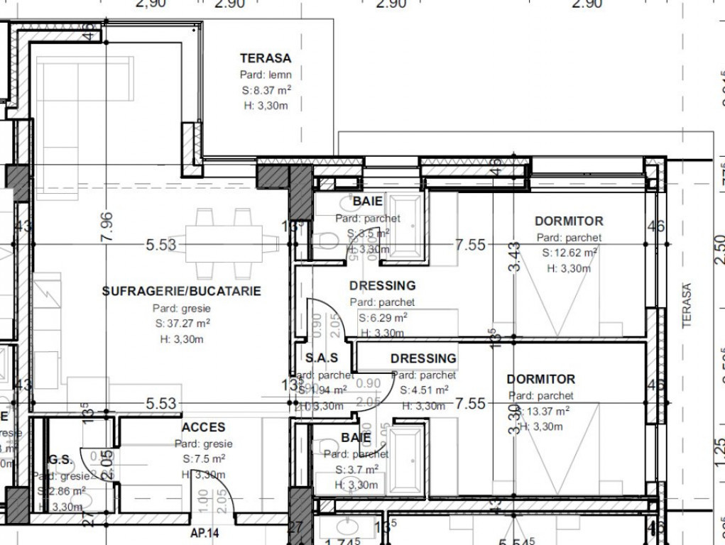 Apartament 3 camere, 93,5 mp, terasă 15,4 mp, zona centrala