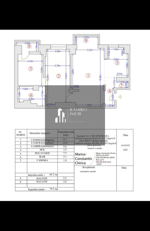 Ramiro Imob vă propune spre vânzare un apartament cu 3 camere, cu o suprafață de aproximativ 71 mp,,situat la etajul 4 din 11. Caracteristici: -Bloc reabilitat termic -Doua balcoane -loc de parcare ADP -instalatii electrice schimbate -instalatii sanitare schimbate Actele sunt pregatite de vanzare Pentru detalii și vizionări, vă puteți adresa Antoniei la numărul 0758 880 813. Preț: 135.000 euro. Comision standard.