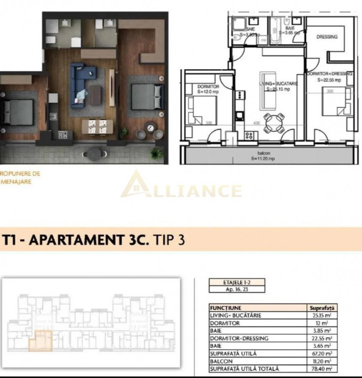 Apartament modern cu 3 camere, la doar 5 minute de metrou Aparatorii Patriei Iti doresti un camin confortabil, intr-o zona bine conectata si intr-un bloc nou Iti prezentam un apartament cu 3 camere, ideal pentru familie, aflat intr-un ansamblu rezidential nou, ce combina eleganta, functionalitatea si accesul rapid la facilitati esentiale. Suprafata utila generoasa: 78,4 mp Disponibil la alegere pe mai multe etaje ndash; tu decizi privelistea Incalzire prin pardoseala ndash; confort sporit si consum redus Finalizare estimata: decembrie 2026 Facilitati ale ansamblului: Spatii comerciale chiar in incinta Zone verzi amenajate si locuri de joaca pentru cei mici Parcari subterane si exterioare Acces rapid la metrou, magazine, scoli, gradinite si clinici Pret: 142.000 euro; TVA Disponibile si alte tipuri de locuinte: Studio-uri Apartamente cu 2 camere Pentru detalii si vizionari, 0739922890, Adrian Tiganila, Alliance Rezidential