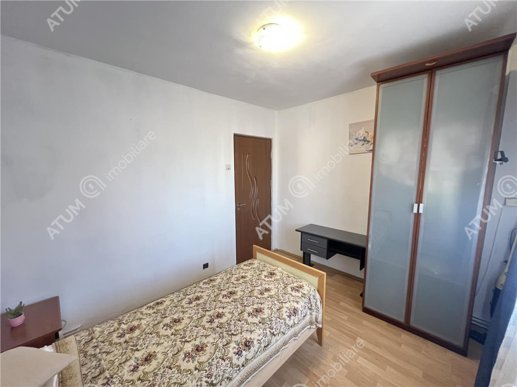 Va oferim spre vanzare un apartament cu 3 camere decomandate, spatios si bine compartimentat, cu o suprafata utila de 65 mp, situat intr-un imobil linistit, cu doar 3 apartamente pe palier, situat in zona Lazaret din Sibiu. La intrare se afla un hol generos, prevazut cu cuier si pantofar, care face legatura catre toate incaperile. Apartamentul dispune de o bucatarie spatioasa, un dormitor principal, al doilea dormitor cu iesire in balcon, precum si un living luminos, de asemenea cu acces in balcon. Proprietatea beneficiaza suplimentar de un balcon inchis in PVC de 3,5 mp si o pivnita uscata si inalta de aproximativ 13 mp, oferind spatii de depozitare practice. Locuinta este complet mobilata si utilata cu frigider, masina de spalat rufe, tv si aragaz, fiind gata de mutare imediata. Finisajele sunt moderne si de buna calitate: gresie, faianta, parchet laminat, usi interioare din lemn si usa metalica la intrare. Incalzirea se realizeaza prin centrala termica proprie, cu instalatie din cupru si calorifere, iar orientarea est-vest asigura lumina naturala pe tot parcursul zilei. Zona este una deosebit de avantajoasa, cu spatii comerciale, scoli, gradinite si statii pentru mijloace de transport in comun in imediata apropiere. Promenada Mall se afla la doar 5 minute de mers, iar accesul catre autostrada A1 este facil. Acest apartament reprezinta o alegere excelenta pentru o familie sau un cuplu care isi doreste confort, spatiu si acces rapid la toate facilitatile orasului. Valoarea de achizitie a apartamentului este de 93.000 euro. Se poate achizitiona si prin credit bancar. ID intern: 3035.