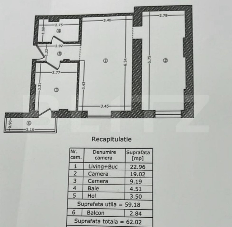 Suprafața utilă 59 m²