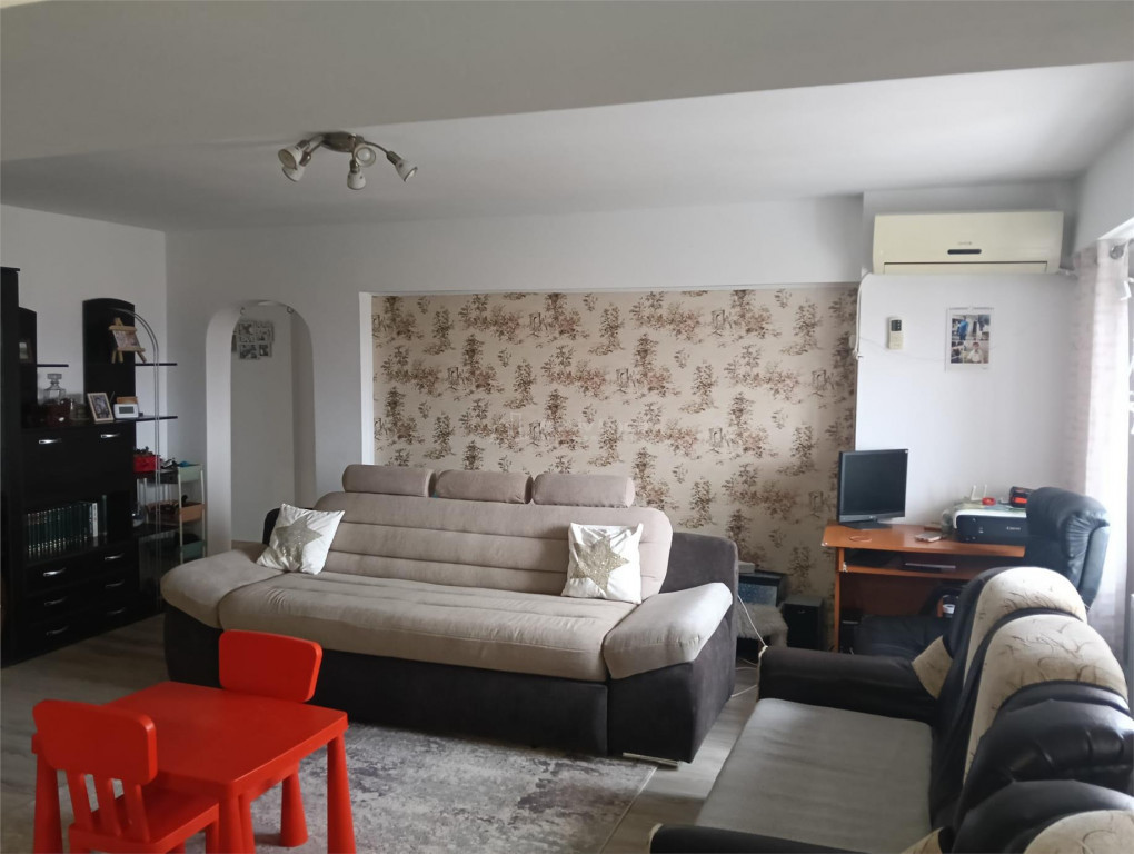 Ofer spre vanzare un generos apartament decomandat cu 3 camere, mobilat si utilat modern, toate utilitatile, strada asfaltata si iluminata, acces stradal ( Sos.Alexandriei ), loc de parcare inclus! Suprafata utila 79 mp. Compartimentare: Hol, Living, Bucatarie deschisa ( poate fi inchisa ), 2 Dormitoare, Dressing, Baie, 2 Balcoane inchise cu termopan. Bloc constructie 1986-Reabilitat in anul 2010, pe cadre si plansee din beton armat, izolatie exterioara cu polistiren de 10 cm -EPS 80, tamplarie PVC cu geamuri termopan. Etaj 3/3 cu placa deasupra, acces la pod din hol si posibilitate de a face spatiu pentru depozitare boxa la subsolul blocului. Apartamentul este dotat cu electrocasnice noi si mobilier modern facut pe comanda, 2 aparate de aer conditionat si un dressing generos la dormitorul mare!. Pret: 74.900 Euro-Tva inclus! Pentru vizionari ( inclusiv in weekend ), telefon: 0787.718.781-Mihai Nitu