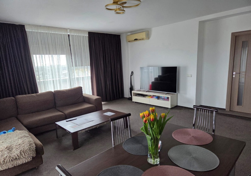 Apartament cu 3 camere Locatie: cartier Albert , Bdul Republicii, stradal. Apartamentul este situat la etajul 4 , intr-un bloc cu regim de înalțime S+P+4 . Imobilul este construit in anul 2012, avand fundatie de beton armat, structura pe cadre de beton, pereti caramida, izolat termic la exterior cu polistiren de 10 cm si vata bazaltica intre tavan si placa. Clasa energetică A. Suprafata apartamentului este de 122,7 mp. Compartimentare: Living + bucatarie (49,3mp),dormitor 1 (14,9mp), dormitor 2 (20mp),baie (6,3mp), terasa (29mp),balcon(3mp). Dispune de: teren împrejmuit cu gard si acces cu porți automatizate, 2 locuri de parcare in subteran, casa scarii placata cu travertin, usa intrare din lemn stratificat, centrala termica proprie, calorifere din aluminiu pe elementi, tamplarie PVC cu geam termopan + rulouri exterior din aluminiu , gresie, faianta, mocheta , pardoseala LVT, etc. Se vinde complet mobilat si utilat. Beneficiind de 3 aparate AC, plita pe gaz , cuptor electric, hota , combină frigorifică, masina de spalat vase, masina de spalat rufe, 2 TV Smart, etc. Vecinătăți: mijloc de transport în comun , after school, restaurante, etc.