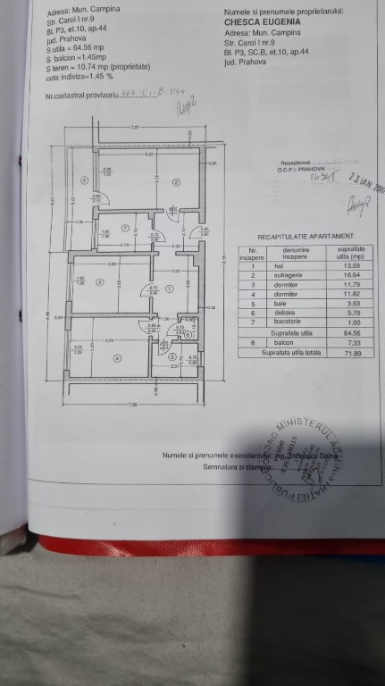 Se oferă spre vânzare apartament cu 3 camere, situat în zona centrală din Câmpina, cu o suprafață utilă de 73 mp, poziționat la etajul 10/10, într-un bloc recent reabilitat termic. Apartamentul este renovat și pregătit pentru mutare imediată, fără investiții suplimentare. Confort și dotări: încălzire în pardoseală electrică – confort superior, distribuție uniformă a căldurii centrală proprie + calorifere (sistem mixt, eficient și flexibil) hidroizolație bloc recent refăcută – fără probleme la acoperiș izolație termică exterioară (bloc reabilitat) finisaje medii, întreținute Compartimentare: living spațios 2 dormitoare bucătărie baie hol generos balcon Avantaje: zonă centrală – acces rapid la magazine, școli, transport apartament luminos, vedere deschisă (avantaj etaj superior) costuri eficiente de întreținere Apartamentul va fi nemobilat Apartamentul este ideal atât pentru locuit, cât și pentru investiție.