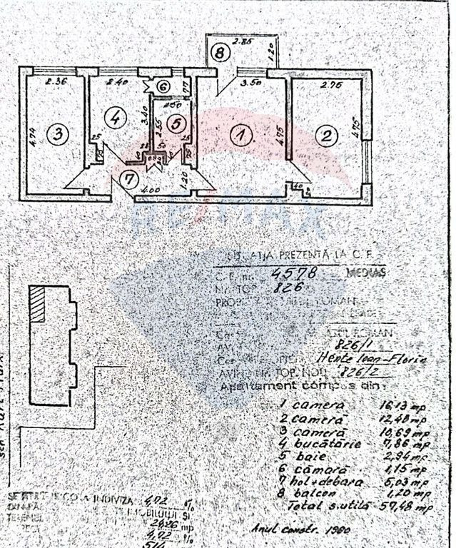 Apartament 3 camere, Centru 59000Euro, etaj 2