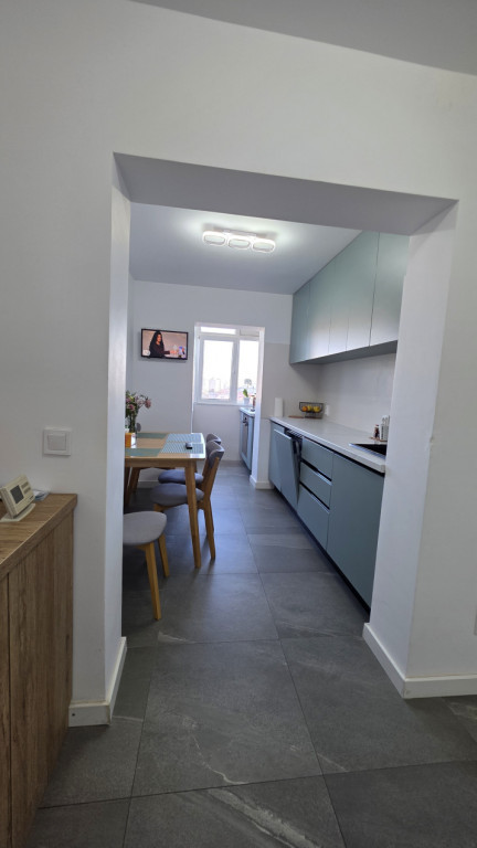 Blitz vă propune spre vânzare un apartament cu 3 camere, spațios și foarte bine întreținut, situat în zona de Vest a municipiului Ploiești, într-un cartier liniștit, apreciat pentru accesibilitate și calitatea vieții. Apartamentul este amplasat la etajul 4 din 4 al unui bloc construit în 1986, fără probleme la nivelul plafonului, și are o suprafață utilă de 54,5 mp. Proprietatea a fost renovată complet recent, cu finisaje de bun gust și mobilier de calitate, fiind gata pentru un nou proprietar — ideal pentru mutare imediată, fără alte investiții. Se vinde complet mobilat și utilat, reprezentând o opțiune foarte bună atât pentru locuință personală, cât și pentru investiție, cu posibilitate de închiriere imediată. Dotări și îmbunătățiri: • centrală termică proprie pe gaz, cu separație individuală la gaze • instalație electrică schimbată complet • ușă de intrare metalică • 2 aparate de aer condiționat • bucătărie complet mobilată și utilată • mașină de spălat vase • mașină de spălat rufe • uscător • televizor • rulouri la geamuri • bloc izolat termic la exterior cu polistiren expandat, pentru un confort termic sporit și costuri reduse de întreținere Blocul este poziționat într-o zonă bine conectată la oraș, cu acces facil către mijloace de transport, magazine, școli, grădinițe și alte puncte de interes, iar scara este curată, cu vecini liniștiți și civilizați, oferind un ambient plăcut și sigur. Cod ofertă / ID BLITZ: P162074 Id intern: P162074