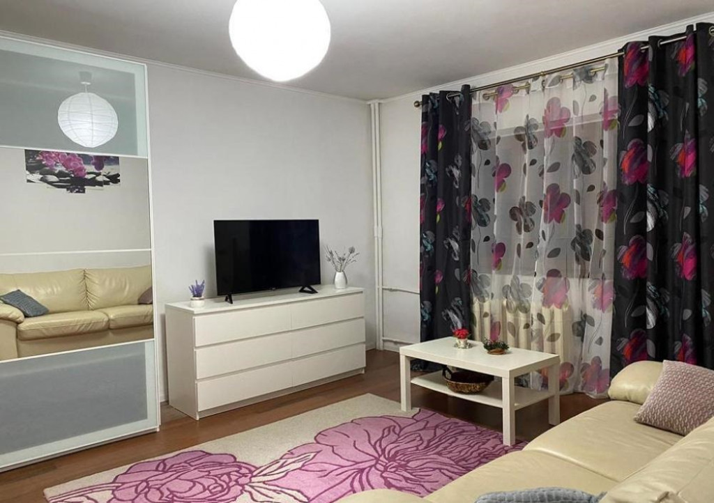Apartament cochet de 3 camere, in zona linistita si retrasa, amplasat pe strada laterala a arterei principale - Sos Oltenitei, vis-a-vis de parcul Oraselul Copiilor, in suprafata de 75 mp, decomandat, cu camere luminoase, cu vizibilitate in ambele gradini cu vegetatie inalta ale blocului, care asigura oxigenare si umbrire, 2 bai, etajul 1, mobilat si utilat complet in stil modern, dotat cu boiler, aer conditionat mobil, Internet Digi, 1 loc de parcare inclus, statia de metrou Brancoveanu si alte statii de transport public STB la 5-7 min de locatie, la mica distanta de gradinite, scoli si restaurante.