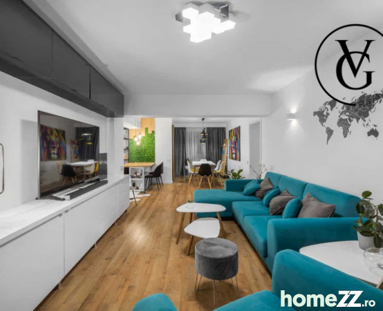 Se închiriază prima dată, pe termen lung, complet mobilat și utilat, cu mobilier realizat la comandă și finisaje moderne.