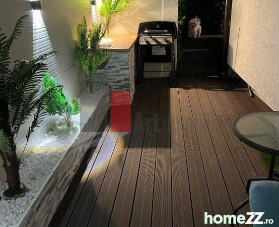 Balconul este spațios și face legătura cu terasa unde vă puteți relaxa în orice moment al zilei. Sub terasă, în curte, se află un spațiu special făcut pentru desfășurarea unei afaceri. Apartamentul este dotat cu parchet de cea mai bună calitate, lustrele sunt de la Mobexpert, camere video exterior și interior, apa este furnizată de pompe ce se află la comun cu încă 2 vile.