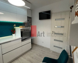 Apartament 3 camere (77m2) situat într-o vilă cu 2 etaje, apartamentul ocupă un etaj întreg, la acesta se adaugă curte proprie 30 mp + loc de parcare. Apartamentul vine complet mobilat și utilat, bucătăria este făcută pe comandă la Casa 2002 din prelungirea ghencea, material mdf alb lucios, și doata cu frigider beko, mașina spălat vase, cuptor microunde, plită și cuptor franke, hotă, chiuvetă sub care se află sistem de filtrare a apei, tv Samsung smart, centrală proprie, masă și scaune. Pe hol se află un pantofar și cuier făcut pe comandă. Baia mare este complet utilată, iar în baia mică se află mașina de spălat haine, spații depozitare, toaletă și sistem de dedurizare a apei. Dormitorul matrimonial este compus din pat luat de la Bella Luna din Prelungirea Ghencea, dressing pe comandă de la casa 2002, tv smart, masa de toaletă și scaun Mobexpert + aer condiționat.