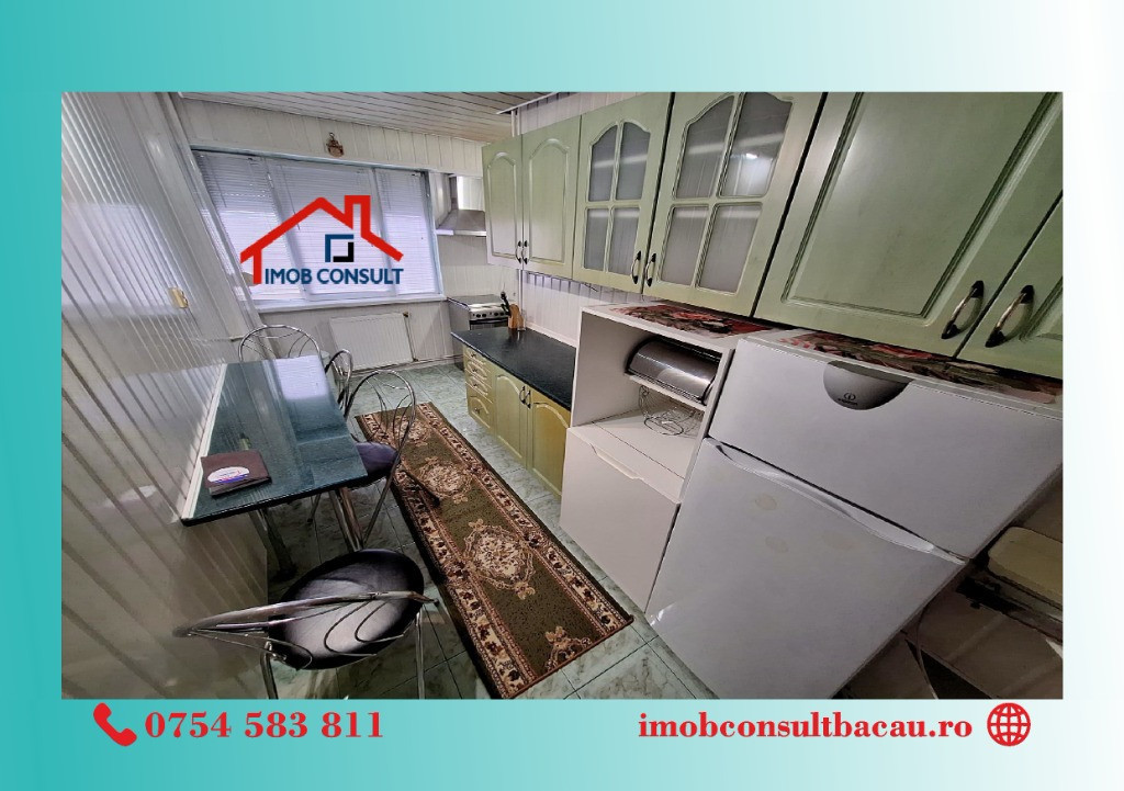 Echipa Imob Consult Bacău vă propune spre închiriere un apartament spațios cu 3 camere, compartimentare decomandată, situat la etajul 4 al unui imobil cu 9 etaje, amplasat pe Bulevardul Nicolae Bălcescu. Blocul este prevăzut cu lift și este izolat termic, oferind un plus de confort și eficiență energetică. Locuința se remarcă prin suprafața utilă generoasă și compartimentarea practică, fiind ideală pentru o familie sau pentru persoanele care își doresc un spațiu amplu într-o zonă bine poziționată a orașului. Apartamentul dispune de centrală termică proprie, trei instalații de aer condiționat, două băi și două balcoane închise, asigurând un nivel ridicat de confort pe tot parcursul anului. Proprietatea se închiriază complet mobilată și utilată, fiind pregătită pentru mutare imediată. Pentru mai multe detalii și programarea unei vizionări, vă stăm la dispoziție: • Cozmin: 0754 583 811; • Corina: 0740 288 297, Vă așteptăm și la sediul agenției Imob Consult Bacău, Strada Banca Națională nr. 27, la intersecția cu Str. Neagoe Vodă, lângă Irish Pub.