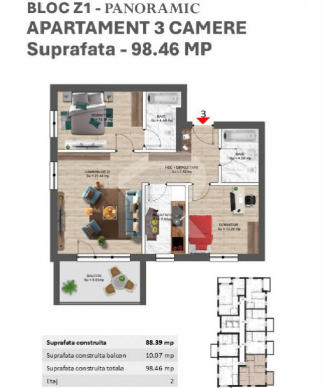 DE INCHIRIAT - 3 camere în GREENFIELD RESIDENCE - PANORAMIC Acest apartament spațios de 3 camere, situat într-una dintre cele mai verzi și liniștite zone ale capitalei – Cartierul Greenfield Residence, îmbină perfect confortul urban cu apropierea de natură.Proprietatea este amplasată într-un bloc modern cu 9 etaje, aflat chiar la marginea pădurii, beneficiind de o priveliște superbă și intimitate deplină.Apartamentul dispune de un balcon închis cu sticlă securizată, ideal pentru relaxare pe tot parcursul anului, și oferă finisaje de calitate superioară, mobilier modern și electrocasnice premium. Locație: Greenfield Residence, Băneasa – Sector 1, București Clădire: Imobil nou, 9 etaje, poziționat la marginea pădurii Băneasa Orientare: Vedere directă spre pădure – liniște, aer curat și lumină naturală Detalii: Suprafață totală: 80 mp Compartimentare: living luminos, 2 dormitoare, 2 băi complet echipate Etaj: 2 din 9 An construcție: 2022 Balcon închis cu sticlă securizată, utilizabil tot timpul anului Mobilat complet și utilat modern Finisaje premium, design contemporan Loc de parcare subteran inclus (cu opțiune pentru al doilea loc) Condiții de închiriere: - Opțiunea 1 1.150 € / lună 2 locuri în subteran - Opțiunea 2 1.000 € / lună 1 loc în subteran Garanție: o lună de chirie Durată minimă contract: 12 luni Disponibilitate: imediată Avantaje & facilități Poziție excelentă, la marginea pădurii Băneasa, aer curat, liniște și intimitate Bloc nou, cu lift, camere de supraveghere și acces controlat Parcare subterană și spații verzi generoase Acces facil către DN1, Aeroportul Otopeni, Mall Băneasa și Școala Americană Comunitate modernă, spații de joacă, zone de recreere și transport Greenfield – Piața Presei Balcon închis cu sticlă securizată – un spațiu versatil de relaxare sau birou Apartament luminos, poziționat excelent în bloc Contact pentru vizionări Alin Cârlan Real Estate Consultant Telefon / WhatsApp: +40723111134 Id intern: AX19801