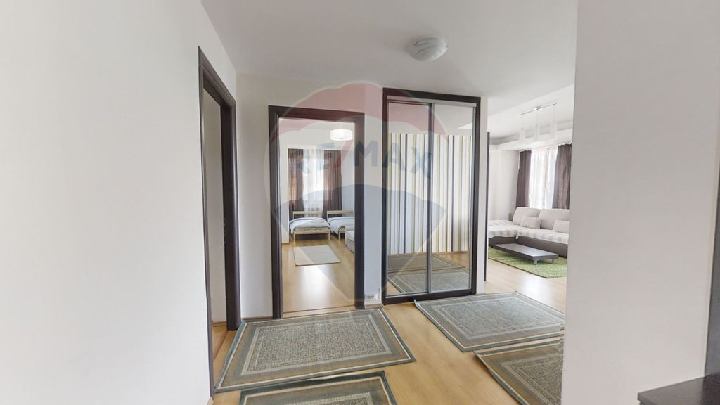 Va propun spre inchiriere un apartament cu 3 camere situat in complexul North Area Lake View pe str. Zagazului, zona Aviatiei, la 3 minute de Parcul Herastrau. Proprietatea se afla la etajul 4 din 9 si are o suprafata de 90 mp, cu 3 camere, 2 bai si 2 balcoane. In plus beneficiaza de 1 loc de parcare in subteran. Apartamentul este utilat si mobilat complet, alaturi de toate electrocasnicele necesare. Pets friendly!!! Compartimentare: Proprietatea este decomandata, dispusa pe 3 camere, dupa cum urmeaza: Hol de acces catre zona de living care are o suprafata generoasa, Bucatarie open space 2 dormitoare 2 bai 2 terase a cate 5+7 mp Apartamentul se inchiriaza cum este prezentat in poze, mobilat si utilat complet. Suprafata generoasa este extrem de versatila astfel ca proprietatea poate fi potrivita ca si rezidenta pentru un cuplu sau o familie (cu zone bine delimitate), dar si pentru o zona open space pentru activitate de birou. Blocul dispune de paza permanenta, are loc de joaca pentru copii, park privat cu lac si cascada cu pesti si broaste testoase. La parter este supermarket, sala de fitness si gastrobar. Toate acestea oferind un loc ideal de relaxare fix la tine acasa. In zona existe nenumarate puncte de interes atat pentru business cat si pentru relaxare: Mall Promenada, sediile mai multor companii multinationale si a multor Ambasade, restaurante, cafenele, locuri de joaca, scoli si gradinite private. De asemenea unitati medicale (clinici, spitale, farmacii) de renume. Legatura cu orasul este facila si cu ajutorul mijloacelor de transport in comun (autobuze, Metrou). - 600 m pana la Metrou Aurel Vlaicu - 800 m pana la Mall Promenada - 150 m pana la Lacul Floreasca - 700 m pana la Lacul Herastrau - 600 m pana la Ambasada Chinei Comision standard! Daca va intereseaza sa inchiriati aceasta proprietate din zona de nord a orasului, va astept sa ma contactati pentru a stabili o vizionare.