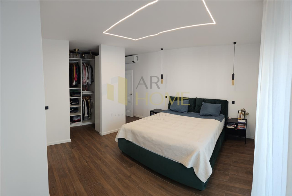 Vanzare apartament 3 camere, de lux, confort 1A, decomandat, 3 bai, parcare privata, Cartier Albert, Ploiesti. Apartamentul este situat la etajul 2 intr-un bloc cu regimul de inaltime P 2E 3Er, construit in anul 2020 pe fundatie de beton armat, structura pe cadre de beton, peretii din caramida Porotherm inclusiv cei de compartimentare interioara, tencuit la interior si izolat termic la exterior cu polistiren de 15 cm. Imobilul se afla intr- o zona de case si blocuri nou construite, avand ca vecinatati gradinita, after school, Meraki Market, mijloc de transport in comun, restaurante, Ploiesti Shopping City. Apartamentul are o suprafata utila de 88 mp plus terasa in suprafata de 5,4 mp. Dispune de urmatoarele finisaje si imbunatatiri: usi interioare MDF Porta Doors, usa intrare metalica, incalzire in pardoseala Rehau, rulouri termoizolante din aluminiu actionate automat cu telecomanda marca Somfy, tamplarie PVC Salamander 92 mm cu geam tripan dublu-laminat (5 foi sticla), parchet laminat, pardoseala balcon din granit cu degivrare electrica, balustrade din sticla laminata, plinta din PVC, vopsea lavabila, video interfon, casa scarii placata cu granit. Incalzirea se realizeaza prin pardoseala cu ajutorul centralei termice proprii, Buderus, iar climatizarea cu ajutorul aparatelor de aer conditionat montate in fiecare camera, Samsung Windfree. Se vinde complet mobilat si utilat cu mobilier bucatarie (plita pe inductie, cuptor electric, hota, frigider), dressinguri (hol si dormitoare), aparate aer conditionat si corpuri de iluminat. Pret: 189.000 Euro.