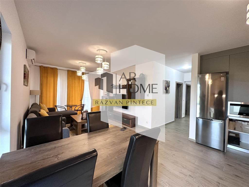 Inchiriere apartament 3 camere, de lux, decomandat, parcare subterana, complex MRS Smart - Cartier Albert, Ploiesti. Apartamentul este situat la etajul 1 al unui imobil cu structura S P 5E, construit in anul 2022, dotat cu ascensor Schindler direct din parcare. Imobilul este situat in cel mai modern complex de blocuri noi construite al orasului, unde beneficiati de restaurant, spatii verzi si locuri de joaca pentru copii, paza umana si sistem de supraveghere video, sala fitness cu piscina interioara, supermarket Kaufland. Locuinta are suprafata utila de 77 mp, plus terasa 10 mp, compartimentat astfel: camera de zi, dormitor matrimonial cu baie proprie, dormitor secundar, bucatarie separata, baie serviciu, spatiu depozitare, hol. Aceasta dispune de urmatoarele finisaje: gresie si faianta, parchet lemn triplustratificat, usi interior MDF Porta Doors, usa intrare antiefractie Effe Class, tamplarie cu geam termopan tripan Salamander. Incalzirea se realizeaza cu ajutorul centralei termice proprii, Vaillant, si a caloriferelor din otel. Apartamentul este mobilat complet si dotat cu masina de spalat rufe automata, plita inductie, cuptor, hota, cuptor microunde, combina frigorifica, TV LED. Se inchiriaza la pretul de 900 EURO, lunar, plus garantie o luna.