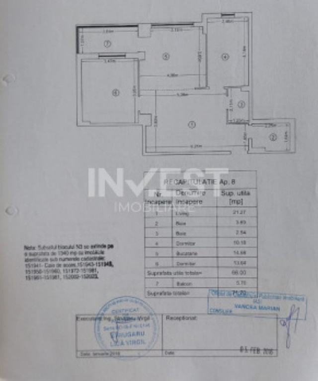 Agentia Invest Imobiliare va propune spre vanzare un apartament spațios cu 3 camere, situat într-un bloc nou, la etaj intermediar (2/8). Locuința se remarcă prin compartimentarea modernă și funcțională: bucătărie open space, living luminos și dormitoare generoase. Este mobilat și utilat complet, gata pentru a fi locuit. Caracteristici principale: Suprafață utilă: 74 mp 3 camere: living + 2 dormitoare Bucătărie open space integrată cu zona de living Baie modernă, finisaje de calitate Balcon generos, ideal pentru momente de relaxare Etaj: 2/8, poziție intermediară, foarte liniștit Bloc nou, cu lift și acces facil la toate facilitățile orașului Mobilat și utilat complet: mobilier modern, electrocasnice de calitate, finisaje elegante Avantaje și beneficii: Etaj intermediar: confort termic și zgomot redus Balcon generos pentru relaxare sau cafeaua de dimineață Zonă foarte bună: acces rapid la magazine, școli, transport, centre medicale Bloc modern, întreținut și sigur Ideal pentru familie sau pentru cei care caută un apartament gata de mutare Preț: 220,000 euro Contact: 0744.288.612 Id intern: P8243
