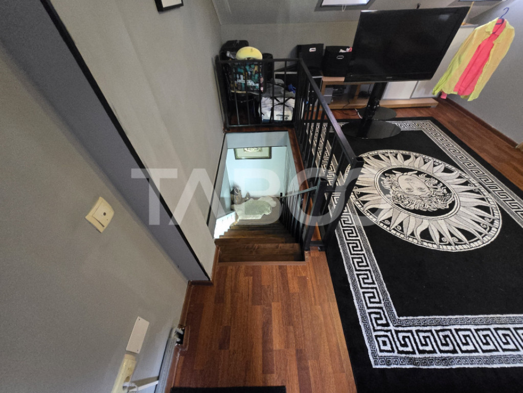 Apartament 3 camere de vanzare, decomandat, 100 mp, zona Tilisca, Sibiu. Intr-o zona tihnita a Sibiului, unde orașul sopteste in loc sa strige, iar centrul e la doar cateva minute de mers, se ascunde un apartament ca o revelatie. O mansarda de 100 mp care nu e doar un spatiu de locuit, ci o experienta traita în lumina, liniste si eleganta. Finisat complet, cu finisaje de lux și un simt al detaliului care te surprinde la fiecare pas, acest apartament cu 3 camere cucereste din prima clipa. Te întampina un spatiu deschis, aerisit, unde luminile ambientale creeaza o atmosfera calda si sofisticata, indiferent de momentul zilei. Fiecare colt a fost gândit nu doar pentru functionalitate, ci și pentru emotie, pentru acel sentiment de acasa care nu poate fi explicat, ci doar simtit. Totul este pregatit pentru tine: fara renovari, fara compromisuri. Doar sa deschizi usa si sa incepi un nou capitol. Avantaje majore ale acestui apartament: • Parcare extra pentru vizitatori • Locatie ferita de aglomeratie TABOO Imobiliare propune un apartament de vanzare cu 3 camere, decomandat, situat in localitatea Sibiu, zona Tilisca, aflat la mansarda intr-un imobil tip bloc cu regim de inaltime pe Parter + 4 Etaje + Mansarda. Anul constructiei 2011, structura caramida. Suprafata utila de 100 mp. Apartamentul este structurat pe 2 nivele astfel: Primul nivel: • Hol; • Living si bucatarie openspace; • Baie; • Dormitor; • Debara si casa scarii; • Hol intermediar; Al 2-lea nivel: • Dormitor; • Dressing; Finisajele interioare sunt de lux: • Usa intrare: metal; • Usi interioare: celulare; • Tamplarie ferestre: pvc, termopan; • Pereti: vopsea lavabila, faianta, tapet; • Podele: parchet, gresie. Utilitati si dotari: • Bucatarie: mobilata, utilata; • Mobilat: complet; • Utilitati: curent electric, apa, canalizare, gaz, catv, telefon, acces internet, fibra optica; • Izolatii: exterior, bloc izolat termic; • Contorizare: apometre, contor gaz, contor curent electric, contorizare separata; • Caracteristici : interfon. Apartamentul se vinde mobilat si utilat cu: plita pe gaz, cuptor, hota, masina de spalat rufe si frigider cu congelator. Incalzirea se realizeaza prin centrala proprie si calorifere. Se accepta ca si modalitate de plata surse proprii sau credit bancar. Pret: 110.000€ Cod ofertă / ID: P24800 Sună-ne acum la 0369.822.820 și află detalii despre această proprietate de vanzare din Sibiu, dar și despre alte proprietăți potrivite pentru tine. Informatii speciale: 1. Descarcă aplicația pe mobilul tau "TABOO Imobiliare" din Apple Store, Google Play sau Huawei AppGallery pentru a afla instantaneu noile proprietăți care intră pe piață. 2. Dacă ai o proprietate pe care vrei să o vinzi sau să o închiriezi, suntem aici pentru tine! Contactează-ne pentru o evaluare gratuită fără obligații și vei descoperi avantajele de a lucra cu o echipă dedicată și experimentată. 3. Dacă vrei sa incepi o cariera de agent imobiliar, suna la 0369.822.820 si programeaza o intalnire pentru a afla toate beneficiile si avantajele. Intră pe TABOO.ro și descoperă cele mai recente oferte, actualizate zilnic. Anunt actualizat in 5 decembrie 2025. Id intern: P24800