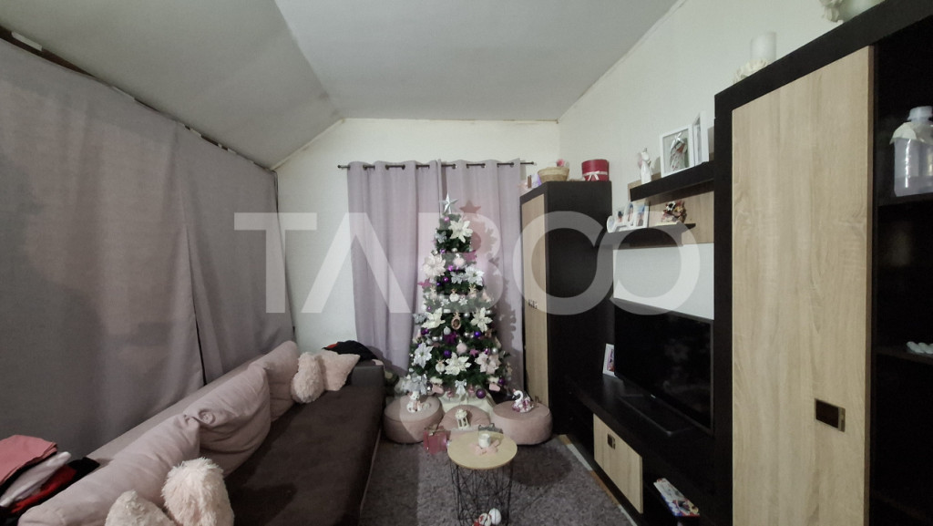 Apartament 3 camere de vanzare, decomandat, 98 mp, zona Selimbar, Sibiu. TABOO Imobiliare propune un apartament de vanzare cu 3 camere, decomandat, situat in localitatea Sibiu, zona Selimbar, aflat la Mansarda intr -un imobil tip casa cu regim de inaltime pe Parter + 1 Etaje + Mansarda; anul constructiei 2010, structura caramida. Suprafata utila de 98 mp. Apartamentul este structurat astfel: • Hol; • Bucatarie; • Baie; • Living; • Dormitor; • Dormitor; Finisajele interioare sunt clasice: • Usa intrare: metal; • Usi interioare: celulare; • Tamplarie ferestre: pvc, termopan; • Pereti: vopsea lavabila, faianta; • Podele: parchet, gresie. Utilitati si dotari: • Bucatarie: mobilata, utilata; • Mobilat: partial; • Utilitati: curent electric, apa, canalizare, gaz, catv, telefon, acces internet, fibra optica; • Izolatii: exterior, bloc izolat termic; • Contorizare: apometre, contor gaz, contor curent electric; • Caracteristici casa/vila: interfon, acoperis. Apartamentul se vinde semimobilat si utilat cu: aragaz, cuptor, hota. Incalzirea se realizeaza prin centrala proprie, calorifere si dispune de sistem de climatizare (A.C.). Se accepta ca si modalitate de plata surse proprii sau credit bancar. Pret: 125.000€ Cod ofertă / ID: P25646 Sună-ne acum la 0369.822.820 și află detalii despre această proprietate de vanzare din Sibiu, dar și despre alte proprietăți potrivite pentru tine. Informatii speciale: 1. Descarcă aplicația pe mobilul tau "TABOO Imobiliare" din Apple Store, Google Play sau Huawei AppGallery pentru a afla instantaneu noile proprietăți care intră pe piață. 2. Dacă ai o proprietate pe care vrei să o vinzi sau să o închiriezi, suntem aici pentru tine! Contactează-ne pentru o evaluare gratuită fără obligații și vei descoperi avantajele de a lucra cu o echipă dedicată și experimentată. 3. Dacă vrei sa incepi o cariera de agent imobiliar, suna la 0369.822.820 si programeaza o intalnire pentru a afla toate beneficiile si avantajele. Intră pe TABOO.ro și descoperă cele mai recente oferte, actualizate zilnic. Anunt actualizat in 10 decembrie 2025. Id intern: P25646