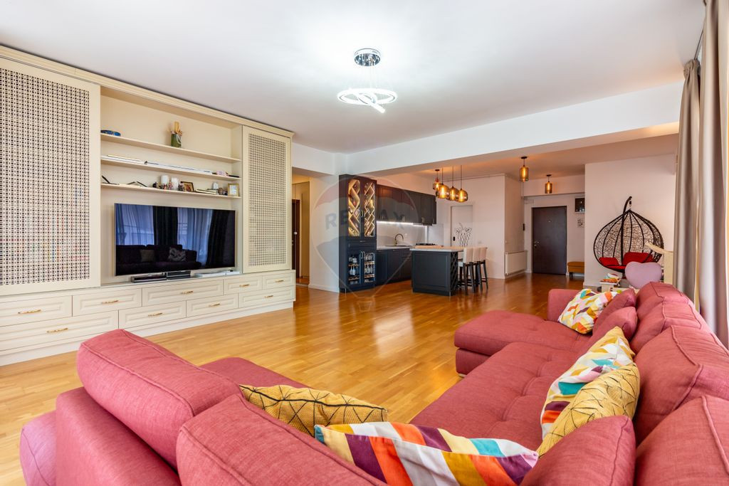 Apartament 3 camere de vânzare | Vita Bella Pipera | 135 mp | Etaj 5 | Terasă & Boxă Îți prezentăm un apartament luminos și spațios cu 3 camere, situat în complexul rezidențial Vita Bella, una dintre cele mai apreciate dezvoltări din zona Pipera. Aflat la etajul 5 din 8 și având orientare sudică, apartamentul beneficiază de lumină naturală pe tot parcursul zilei – ideal pentru un stil de viață modern și echilibrat. Cu o suprafață totală de 135,84 mp, din care 21 mp sunt dedicați terasei, locuința oferă un cadru excelent pentru relaxare în aer liber, seri liniștite sau momente de socializare. Zona de zi cu living open-space, bucătărie și dining de 64 mp creează un spațiu generos și versatil. Cele două dormitoare sunt bine delimitate, iar dormitorul matrimonial beneficiază de baie proprie – perfect pentru confortul personal. De asemenea, o cămără dedicată îți oferă spațiu suplimentar pentru depozitare. Înălțimea interioară de 3 metri amplifică senzația de spațialitate și rafinament, rar întâlnită în construcțiile recente. Apartamentul poate fi recompartimentat cu ușurință într-un 4 camere, adaptat nevoilor unei familii numeroase sau celor care lucrează remote. Se vinde complet mobilat și utilat, gata de mutare, iar în preț este inclusă o boxă la subsol (2,68 mp) – extrem de utilă pentru depozitarea lucrurilor mai voluminoase. La cerere, pot fi achiziționate și două locuri de parcare subterane alăturate, câte 17.500 euro fiecare – un avantaj esențial în zona Pipera, unde accesul rapid și parcarea privată sunt un real beneficiu. Această proprietate îți oferă echilibrul perfect între spațiu, confort și o locație excelentă, potrivită atât pentru locuit, cât și pentru investiție. Contactează-ne pentru detalii suplimentare sau pentru a programa o vizionare.