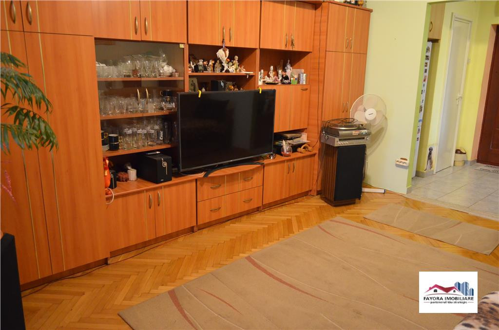 Apartament 3 Camere de Vanzare Zona Tudor Fayora Imobiliare va ofera spre vanzare un apartament cu trei camere in zona Tudor, intr-o zona linistita, avand suprafata de aproximativ 55 mp utili. Imobilul este insorit si se compune din: trei camere total decomandate, o bucatarie, o camara, o baie cu geam, doua holuri si un balcon generos. Apartamentul este dotat cu: centrala termica, geamuri termopan, parchet, gresie, faianta. In apropiere se afla magazine, statie de autobuz, piata, scoli, gradinite, parc, etc. Exista posibilitate de parcare in fata imobilului. Imobilul este izolat termic, iar acoperisul blocului este reabilitat. Apartamentul se vinde partial mobilat si utilat, pretul de vanzare este 108.000 euro, negociabil. Contactandu-ne pe noi, daca sunteti clienti cumparatori beneficiati de servicii de consultanta gratuita si nu vi se va percepe comision. Suntem pregatiti si hotarati sa va oferim cele mai bune solutii in domeniul imobiliar, fie ca este vorba de cele mai competitive preturi, oferte personalizate conform cerintelor dvs. sau de asistenta pe intreaga durata a efectuarii tranzactiei. Cu responsabilitate, echipa Fayora Imobiliare face ca lucrurile sa se concretizeze, face ca oamenii sa isi indeplineasca visurile.