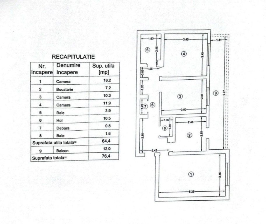 Apartament 3 camere, 76.40 mp, zona Dancu