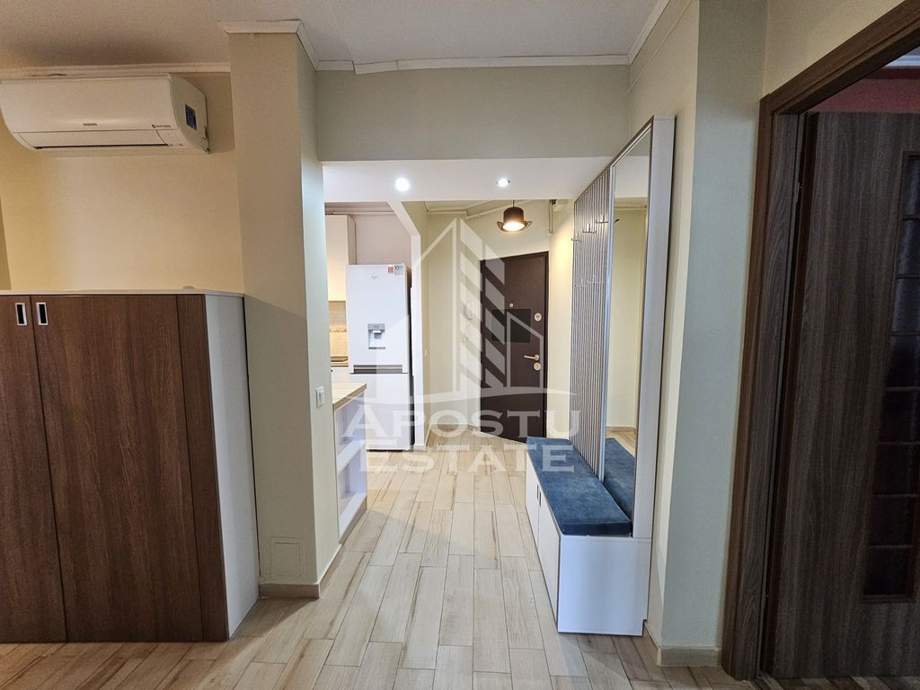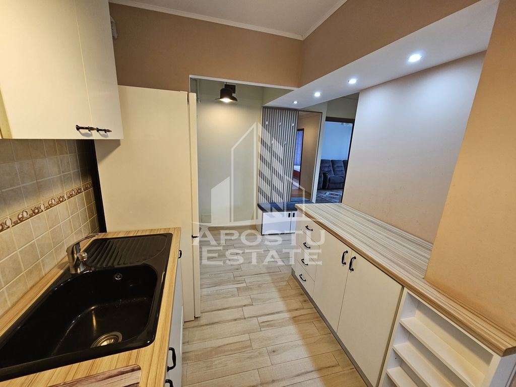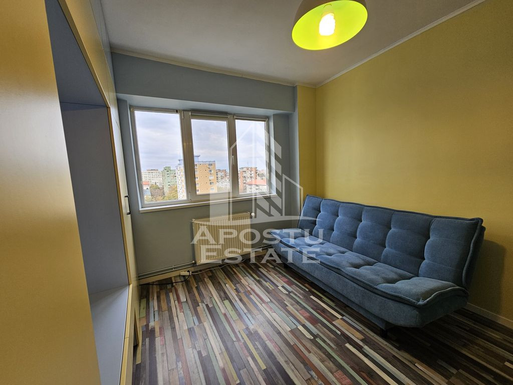 APOSTU ESTATE va propune spre vanzare un apartament cu 3 camere situat in zona Calea Circumvalatiunii, in imediata apropiere de Iulius Mall si Piata Unirii – una dintre cele mai cautate si apreciate zone ale Timisoarei. Detalii proprietate: - Suprafata utila: 67 mp - Etaj: 8 din 10 - Compartimentare: decomandat - Confort: 1 - An constructie: 1978 Spatii: - 3 camere spatioase - 1 bucatarie complet utilata - 1 baie moderna - 1 balcon inchis - 1 boxa la subsol inscrisa in CF Dotari si finisaje: - Incalzire prin centrala termica proprie cu calorifere - Aer conditionat - Ferestre termopan si tripan PVC - Podele din gresie si parchet laminat - Contorizare separata: apometre si contor gaz Electrocasnice incluse: Aragaz, cuptor, frigider, hota, masina de spalat rufe, masina de spalat vase, centrala termica proprie. Descriere suplimentara: Apartamentul se vinde complet mobilat si utilat, exact ca in fotografii, fiind disponibil imediat pentru mutare. Locuinta se afla intr-un bloc cu interfon si lift, iar ferestrele orientate spre partea din spate a blocului ofera liniste si confort. Puncte de interes in apropiere: Iulius Mall, Piata Unirii, mijloace de transport in comun, supermarketuri, scoli si gradinite. Acest apartament reprezinta o alegere excelenta atat pentru locuinta proprie, cat si ca investitie imobiliara, datorita locatiei si facilitatilor oferite. Pentru mai multe informatii si programarea unei vizionari, contactati echipa APOSTU ESTATE.