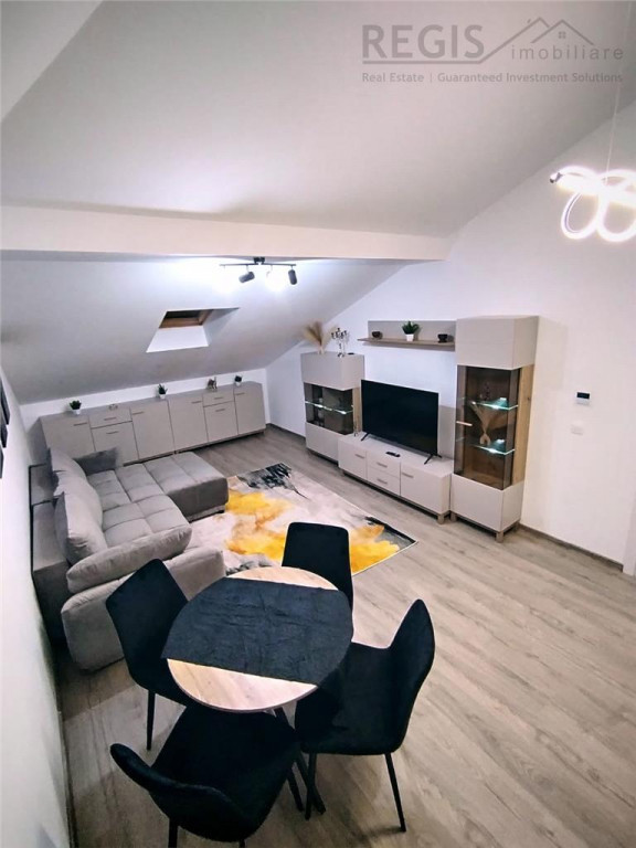 ID intern: 6777. REGIS Imobiliare va propune spre inchiriere apartament cu 3 camere decomandat, situat in zona Tractorul, intr-un complex rezidential nou, ideal pentru un cuplu, familie sau persoane care isi doresc confort si acces rapid catre toate punctele de interes din oras. Apartamentul are o suprafata utila de 70 mp, este situat la etajul 3 si se afla la prima inchiriere, fiind complet mobilat si utilat, exact ca in poze. Compartimentarea este foarte practica, oferind spatii separate si bine organizate: - living spatios si luminos - 2 dormitoare( unul la mansarda) - bucatarie complet utilata - baie - hol generos - balcon - loc de parcare inclus Dotari si beneficii - aer conditionat - incalzire in pardoseala - TV smart in fiecare camera - mobilier modern - electrocasnice complete - finisaje de calitate - loc de parcare inclus - acces securizat cu bariera Despre zona Zona Tractorul este una dintre cele mai cautate zone din Brasov, apreciata pentru accesul facil catre oras si pentru toate facilitatile din apropiere. In zona se gasesc: - centre comerciale si supermarketuri - restaurante si cafenele - statii de autobuz - scoli si gradinite - spatii verzi - acces rapid catre Coresi Shopping Resort Comisionul agentiei este 50% TVA din prima chirie. Va asteptam la vizionare! Agent Imobiliar- Stefania