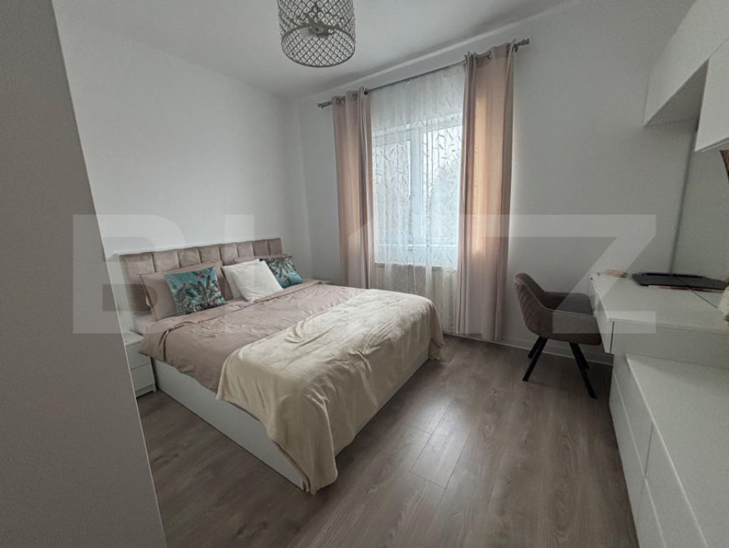 Apartamentul a fost renovat, complet mobilat și utilat în 2025, fiind ideal atât pentru locuință proprie, cât și pentru investiție. Compartimentarea este practică și funcțională și cuprinde hol de acces, living luminos+ bucătărie, 2 dormitore și o baie. Parcare dispobilă în curtea blocului.