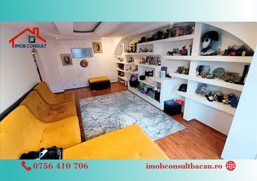 Imob Consult Bacău vă propune spre vânzare un apartament cu 3 camere, cu compartimentare decomandată, situat la etajul 2 al unui imobil cu 4 niveluri, amplasat într-o zonă apreciată și bine conectată – Neagoe Vodă. Blocul este izolat termic, contribuind la un confort sporit și costuri reduse de întreținere. Apartamentul beneficiază de balcon închis, oferind un spațiu suplimentar util. Locuința este dotată cu: • centrală termică proprie, • instalație de aer condiționat, • rulouri la ferestre, • masina de spalat vase. Se vinde complet mobilat și utilat, inclusiv cu mașină de spălat vase, fiind pregătit pentru mutare imediată, fără investiții suplimentare. Proprietatea reprezintă o alegere excelentă atât pentru locuire proprie, cât și pentru investiție, datorită poziționării și caracteristicilor sale. Dacă consideri că această proprietate ți se potrivește, nu ezita să ne contactezi: • Bogdan – 0756 410 706; • Corina – 0740 288 297, Sau te așteptăm la sediul Imob Consult Bacău, Str. Banca Națională nr. 27, intersecție cu Str. Neagoe Vodă, lângă Irish Pub.