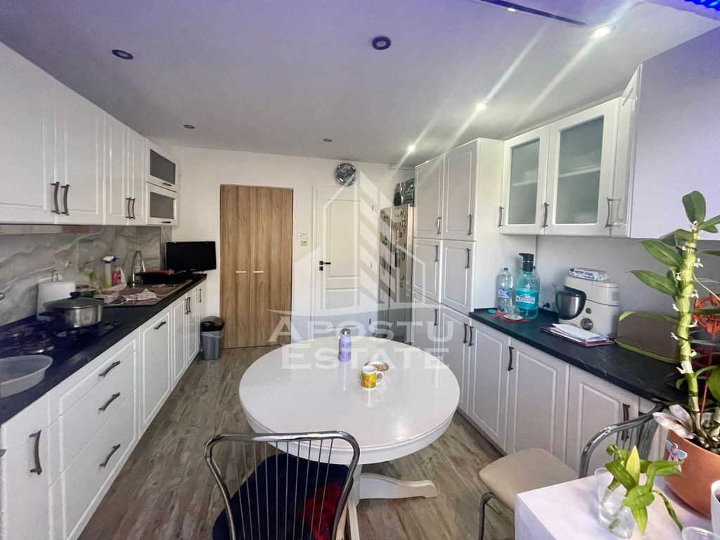 APOSTU ESTATE va propune spre vanzare un apartament spatios cu 3 camere, situat in zona UTA, una dintre cele mai apreciate zone rezidentiale din Arad. Apartamentul este partial decomandat si se afla la etajul 3 al unui bloc cu 4 etaje, oferind liniste, intimitate si acces facil la punctele de interes urban. Suprafata totala: 127 mp (conform extras CF) Suprafata utila: aprox. 102 mp Compartimentare: Hol generos Living luminos 2 dormitoare Bucatarie spatioasa cu loc de luat masa si iesire pe balcon 2 bai 2 balcoane (unul din bucatarie, iar unul din dormitorul mare) Dotari si finisaje: Instalatie electrica complet schimbata Renovare finalizata in 2024 Parchet de lemn masiv in camere Pardoseala din gresie in bai Parchet laminat in bucatarie si hol 2 aparate de aer conditionat Incalzire prin centrala termica proprie Apartamentul se vinde partial mobilat si utilat Casa scarii renovata Loc de parcare Recons platit pentru anul 2025 Apartamentul combina spatiul generos cu finisajele de calitate si se preteaza ideal pentru o familie sau pentru cei care doresc confort si acces rapid la facilitati. Contacteaza-ne pentru detalii suplimentare si pentru a programa o vizionare! Oferim posibilitatea obtinerii unui credit imobiliar prin departamentul nostru de brokeraj financiar, precum si consultanta si asistenta pe intreaga durata a procesului de vanzare. Id anunt: CP2519231